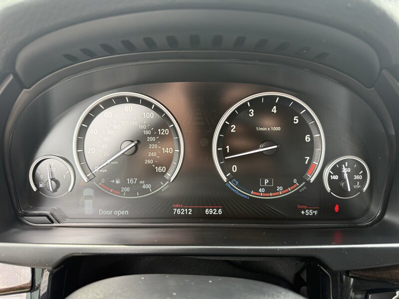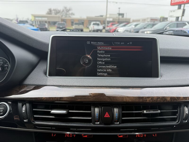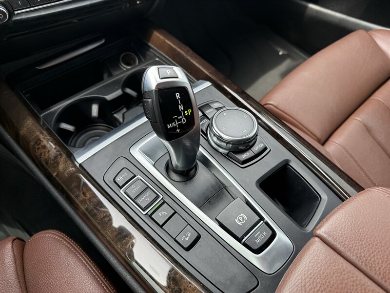2016 BMW X5 xDrive35i — Black Sapphire Metallic outside, Black leather inside, and the kind of German engineering that makes traffic feel like a suggestion. Powered by a 3.0L TwinPower Turbo I6 (300 hp, 300 lb-ft) mated to BMW’s smooth 8-speed automatic and xDrive all-wheel drive. Factory-equipped with BMW iDrive (rotary controller and color display) with Bluetooth/USB, power front seats with driver memory, leather upholstery, dual-zone automatic climate control, power liftgate, xenon headlights, rain-sensing wipers, rearview camera and parking sensors — all the creature comforts you expect. Below 77,000 miles (about 7,000 miles/year), excellent condition, 18 MPG city / 24 MPG highway, and a clean CARFAX — basically a sporty tuxedo on wheels that still behaves itself.