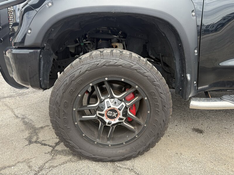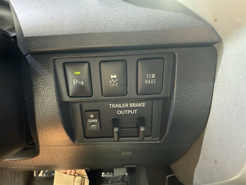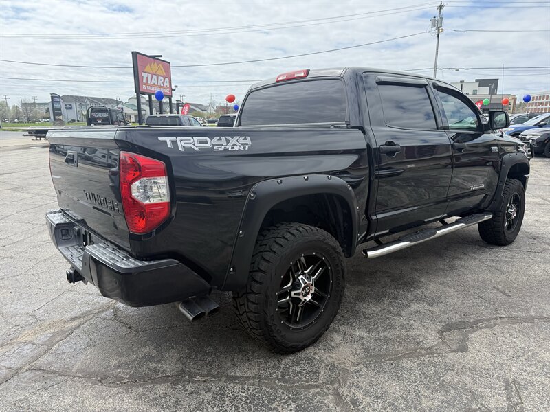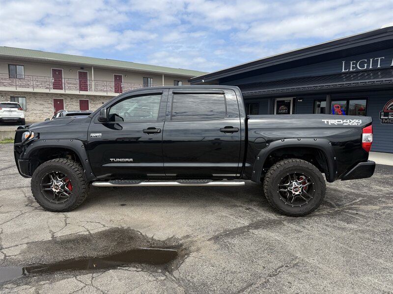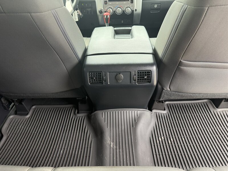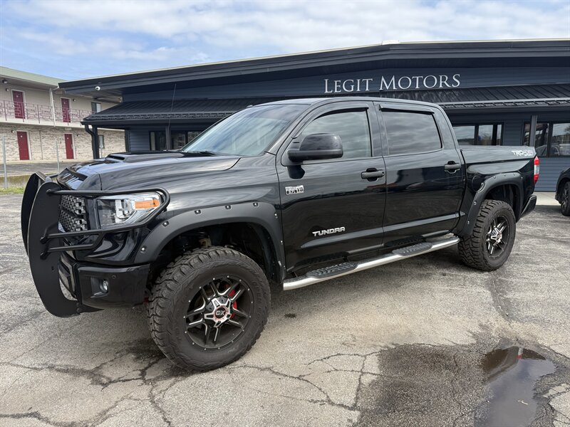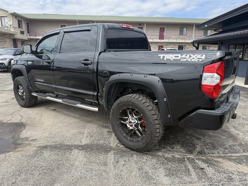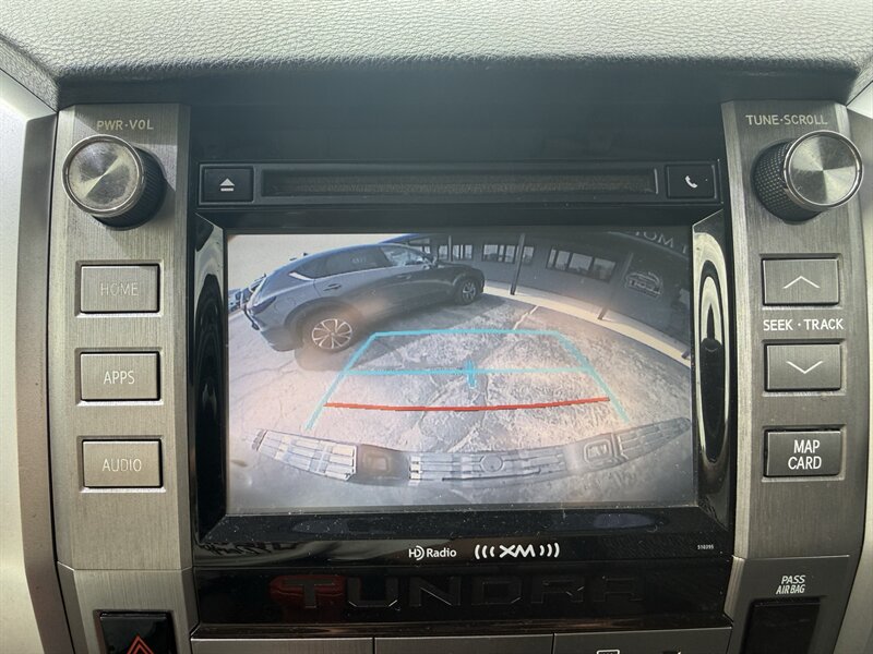 2019 Toyota Tundra SR5 in Midnight Black Metallic with Graphite cloth interior — powered by a thirsty (in a good way) 5.7L Flex-Fuel V8 delivering 381 hp and 401 lb-ft of torque. Factory-equipped with Toyota Entune infotainment (Bluetooth and USB), rearview camera, power windows/locks, remote keyless entry, cruise control, tilt/telescoping steering wheel, steering-wheel audio controls, durable cloth seats, ABS, stability and traction control, multiple airbags, tire-pressure monitoring and towing-friendly features like tow/haul mode and trailer-sway control. Excellent overall condition with a clean CARFAX — tough enough to haul your toys, classy enough to park next to a Prius and not be ashamed.