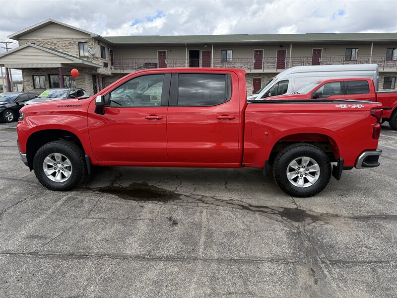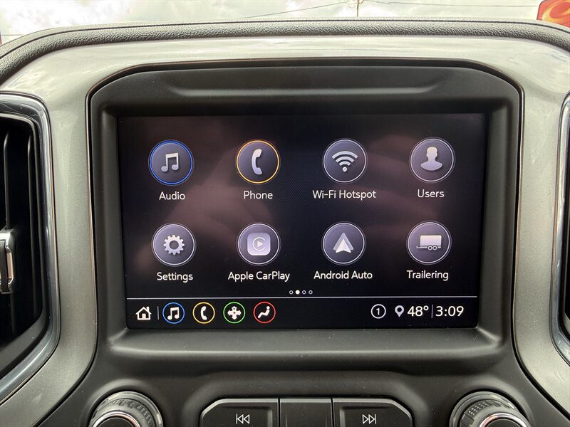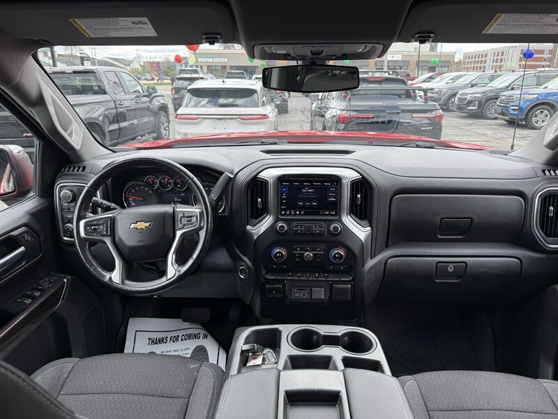 2020 Chevrolet Silverado 1500 LT in Red Hot with Jet Black cloth — powered by the EcoTec3 5.3L V8 (355 hp / 383 lb-ft), getting 16 MPG city and 22 MPG highway. Factory-standard features include the Chevrolet Infotainment system with touchscreen plus Apple CarPlay and Android Auto, Bluetooth hands-free calling and audio streaming, multiple USB ports, AM/FM radio, steering-wheel audio and cruise controls, remote keyless entry, power windows/locks/mirrors, cloth seating, dual-zone air conditioning basics, rearview camera, StabiliTrak stability control with ABS and full airbags, OnStar with available Wi-Fi hotspot, and factory trailer-prep wiring — basically everything you need to work hard, play harder, and still find your campsite on Spotify. Excellent overall condition with a clean CARFAX — this truck is ready to haul, hustle, and humble your weekend plans.