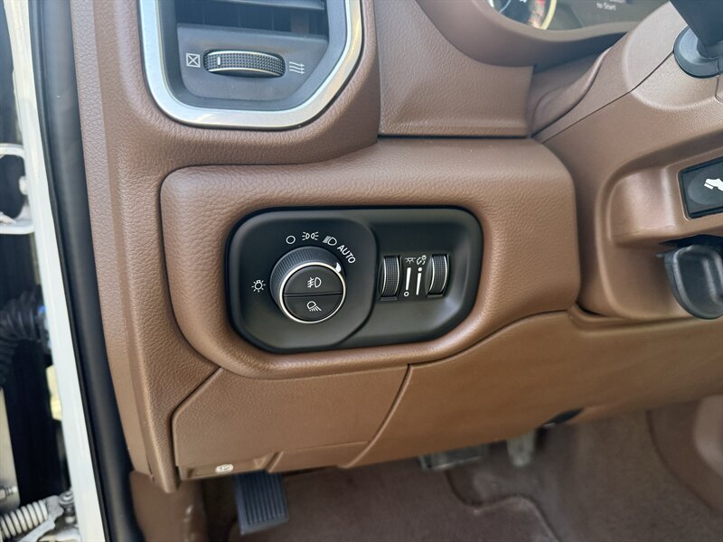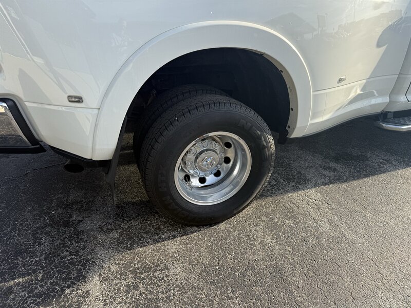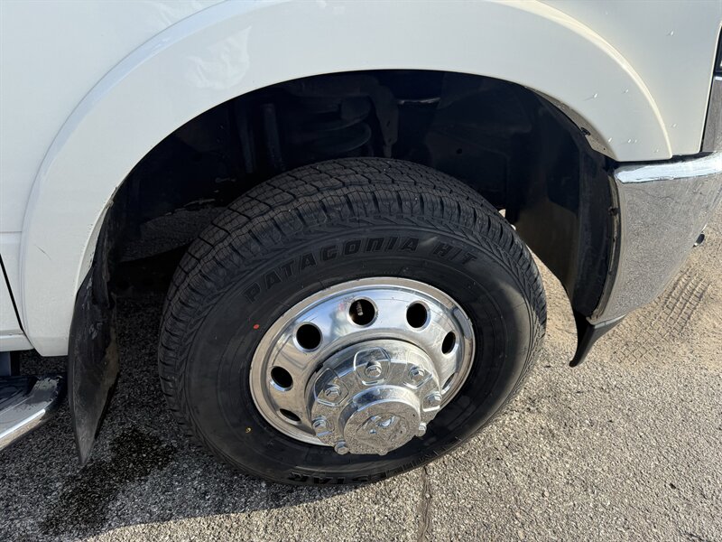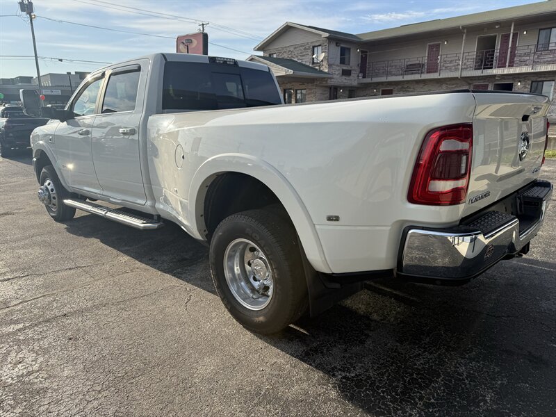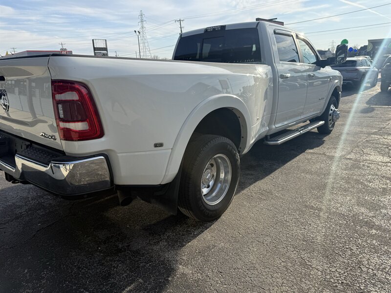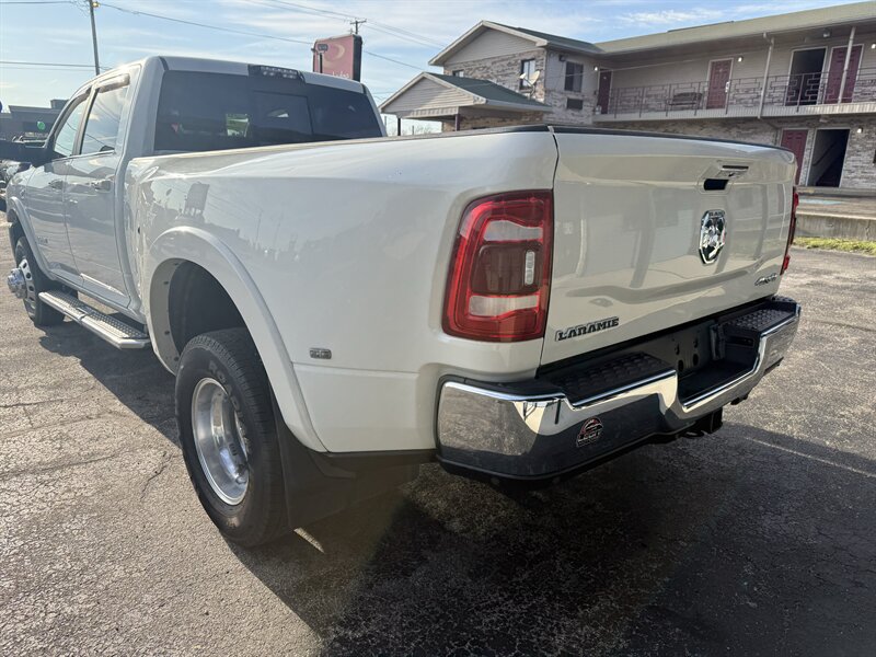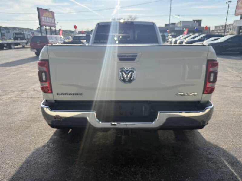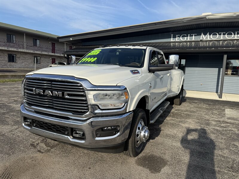 2020 RAM 3500 Laramie — Bright White Clear Coat outside, Mountain Brown/Light Frost Beige leather inside, and a Cummins 6.7L turbo diesel I6 putting out a gut-punching 370 hp and 850 lb-ft of torque (yes, seriously). Factory-equipped for serious work and civilized comfort: leather-trimmed power front seats with heating and ventilation, dual-zone automatic climate control, power-adjustable driver memory, a Uconnect touchscreen with Apple CarPlay/Android Auto and Bluetooth, steering-wheel controls, premium audio, power mirrors (heated, with turn indicators), chrome exterior accents and polished wheels, LED lighting, rearview camera and parking sensors, robust towing hardware and stability/traction control plus full airbag/ABS protection. In excellent overall condition with a clean CARFAX — basically a gentle giant that can tow your toys and still look good dropping the kids off at school.