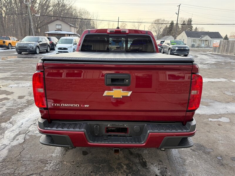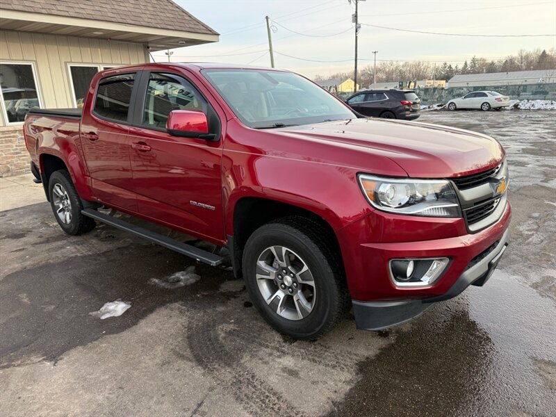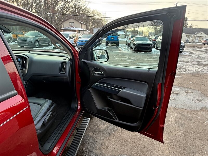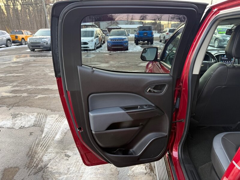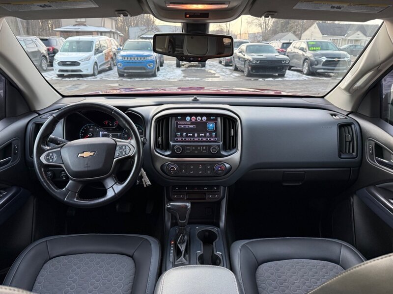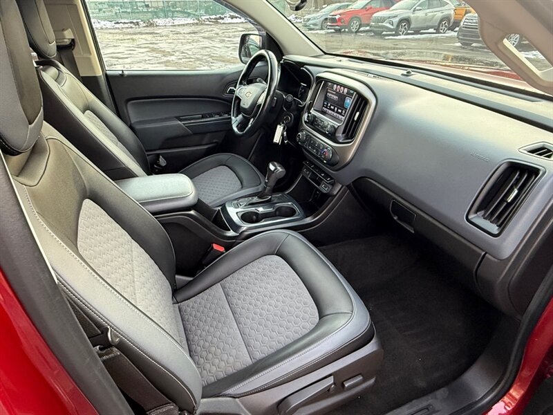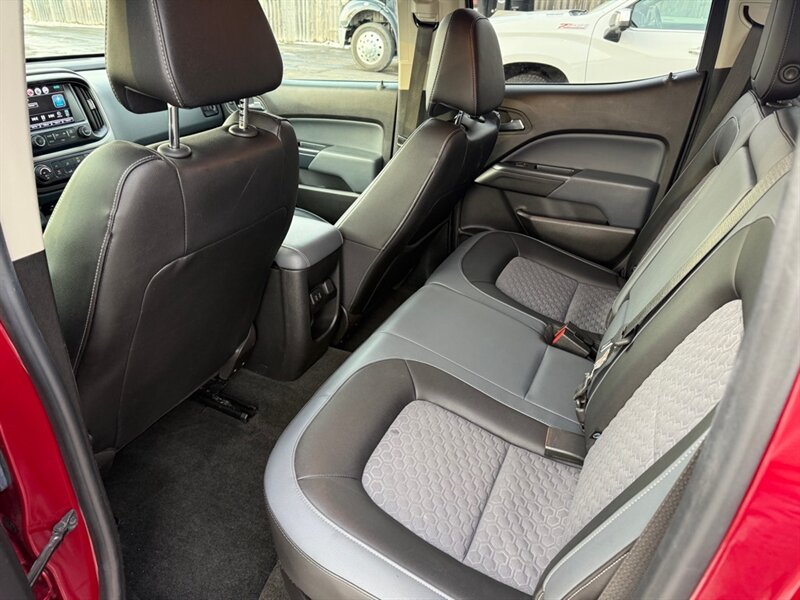 2017 Chevrolet Colorado Z71 - Cajun Red Tintcoat outside, Black leather inside, powered by the stout 3.6L V6 (308 hp / 275 lb-ft). The factory Z71 off-road package outfits this truck with off-road-tuned suspension and monotube shocks, skid plates, a locking rear differential, hill-descent control, and 17'' alloy wheels wrapped in all-terrain tires, plus Z71 badging and rugged trim; factory comfort and safety gear includes Chevrolet MyLink infotainment with Bluetooth, cruise control, power windows/locks and remote keyless entry, plus standard airbags, ABS and stability control. Well-kept with under 97,000 miles (averaging <10,000/yr), EPA-rated 17 MPG city / 24 MPG highway, excellent overall condition and a clean CARFAX. Basically, it's ready to hit the dirt or the grocery run - and look good doing both.