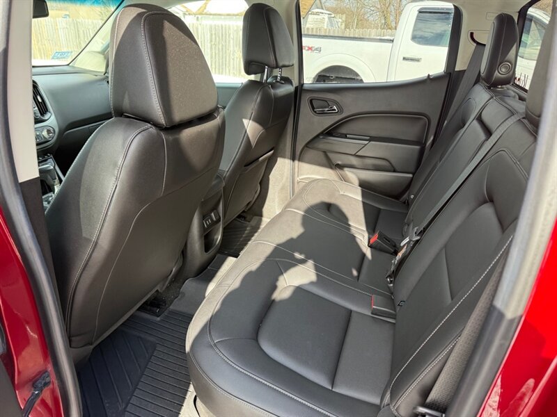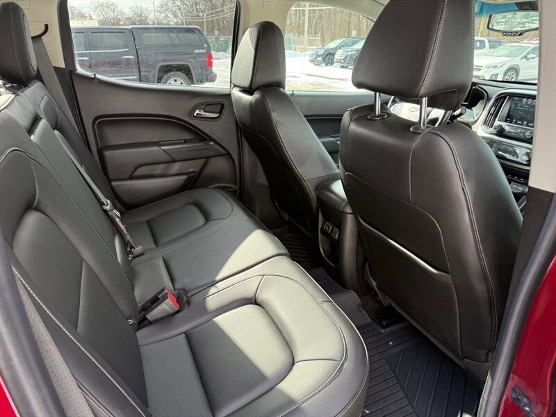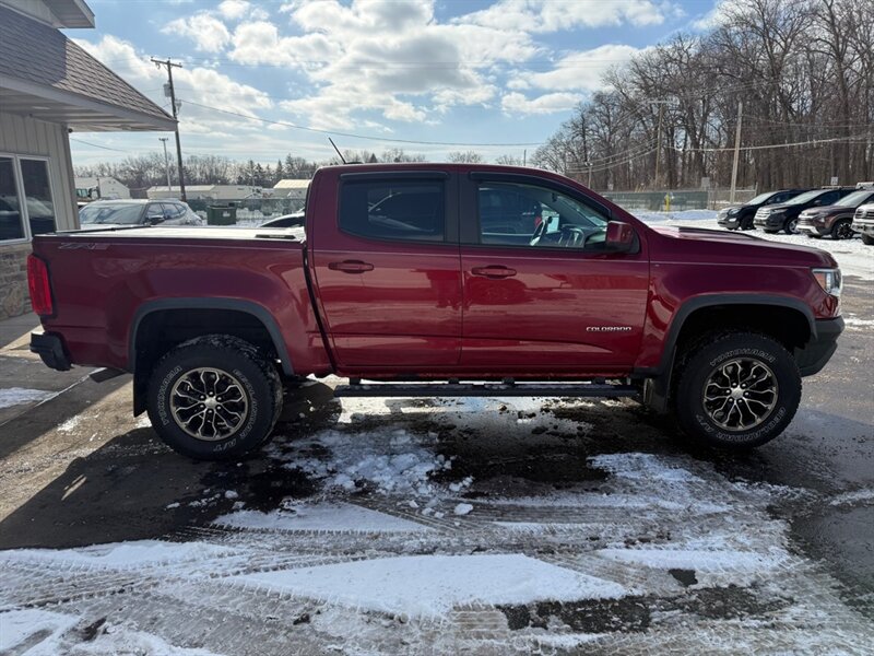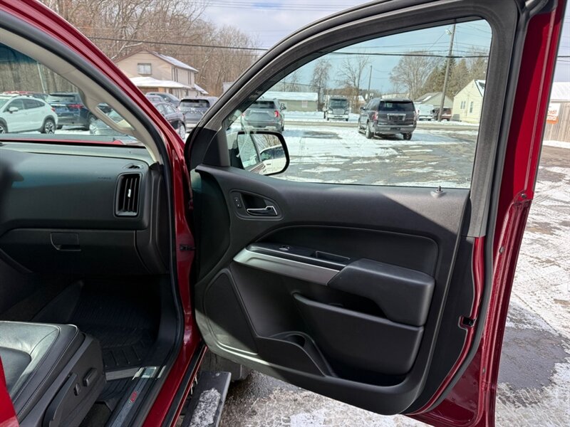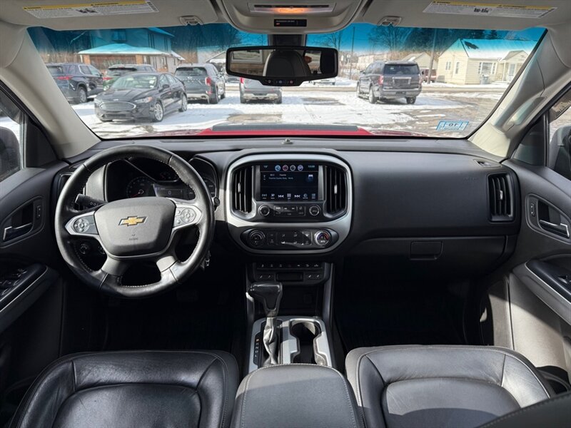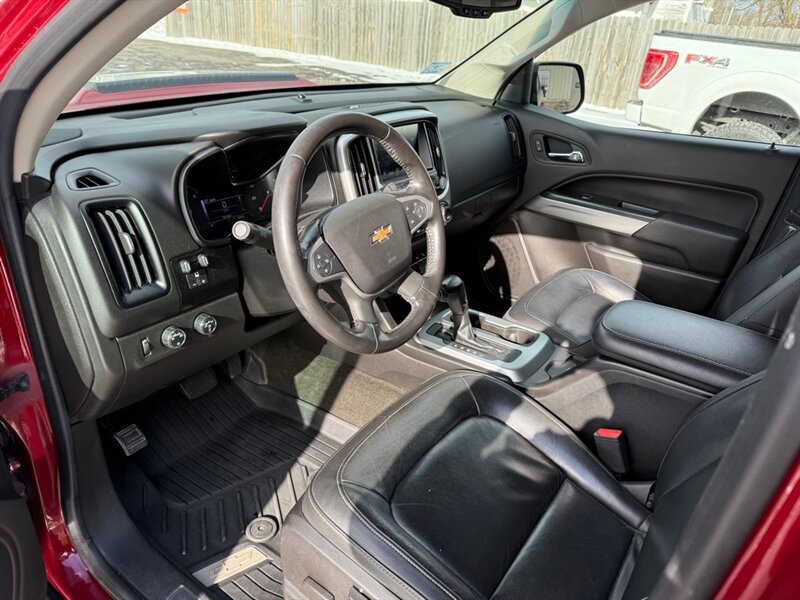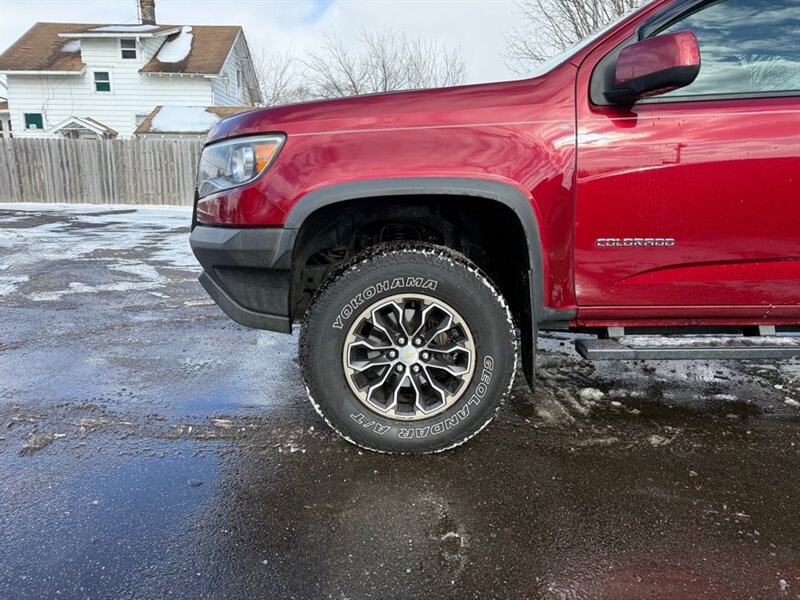 2017 Chevrolet Colorado ZR2 - burgundy outside, Black leather inside, and basically a mid-size truck that moonlights as an adventurer. Powered by a 3.6L V6 with 308 hp and 275 lb-ft (smoothly routed through an 8-speed automatic), this ZR2 wears its factory off-road kit proudly: Multimatic DSSV off-road dampers, widened track and flared fenders, front and rear electronic locking differentials, underbody skid plates and rock rails, 17-inch wheels with all-terrain tires, hill-descent control and a tow package - plus creature comforts like Chevy MyLink with Bluetooth/USB, rear camera, power windows/locks, remote keyless entry and leather seating. It sips fuel at 16 MPG city / 18 MPG highway, has a clean CARFAX, and is in excellent overall condition - ready to handle your commute or your need to impress actual rocks.