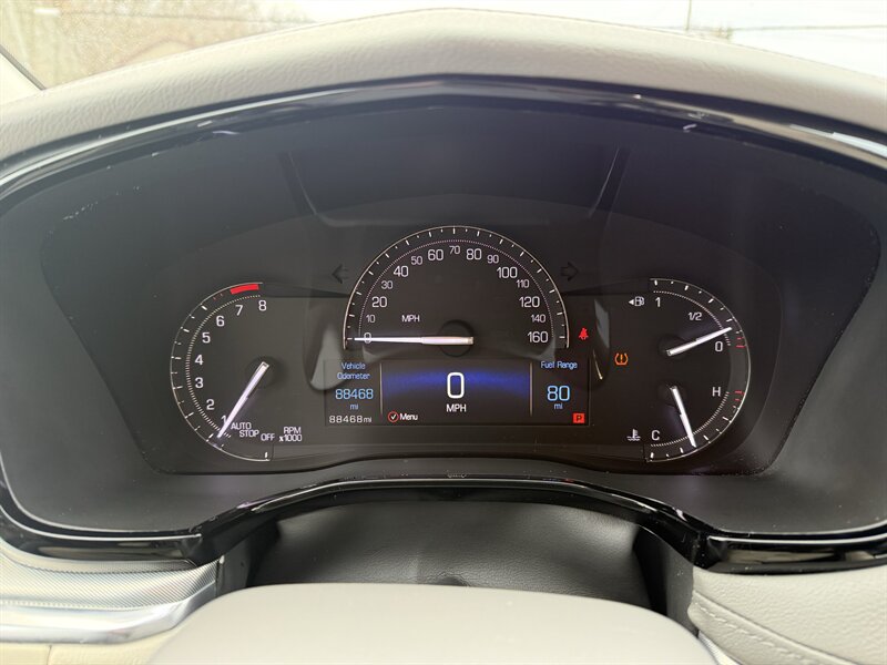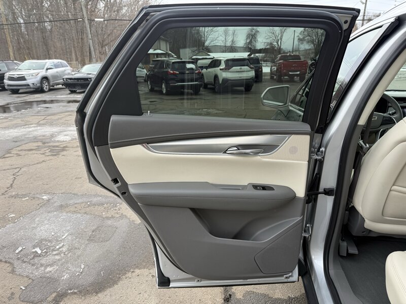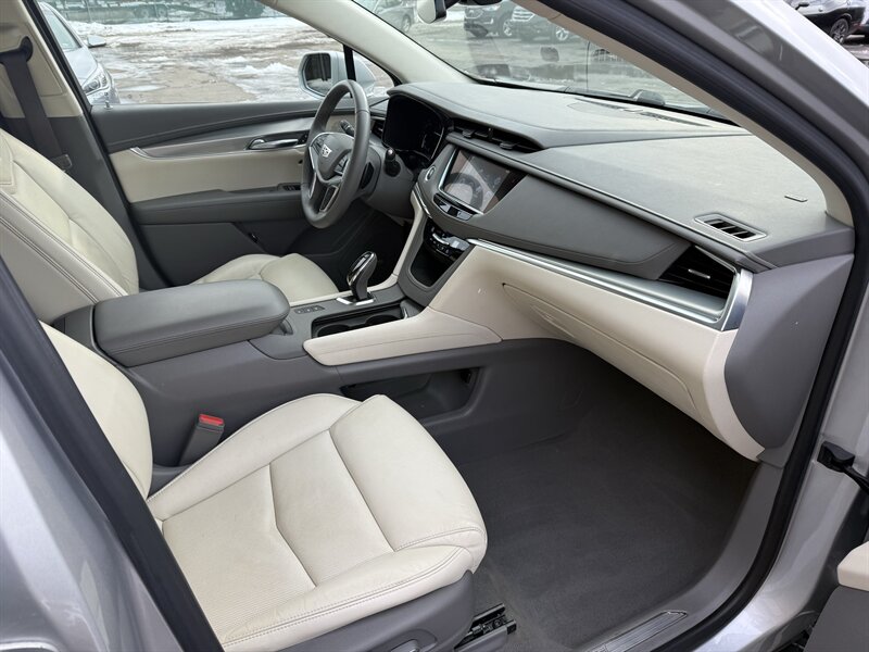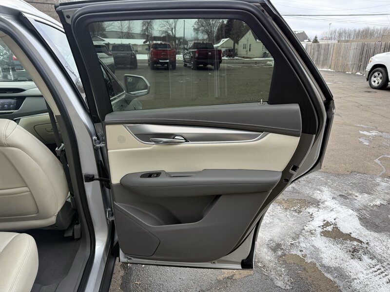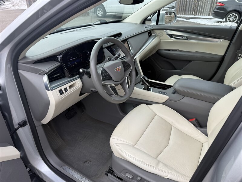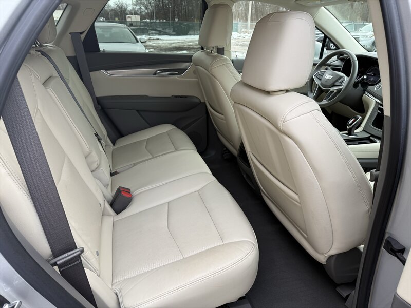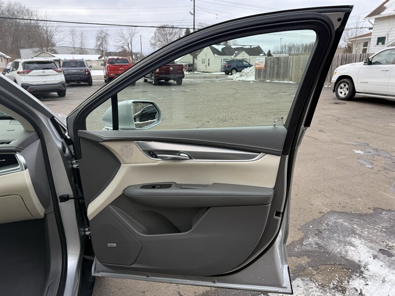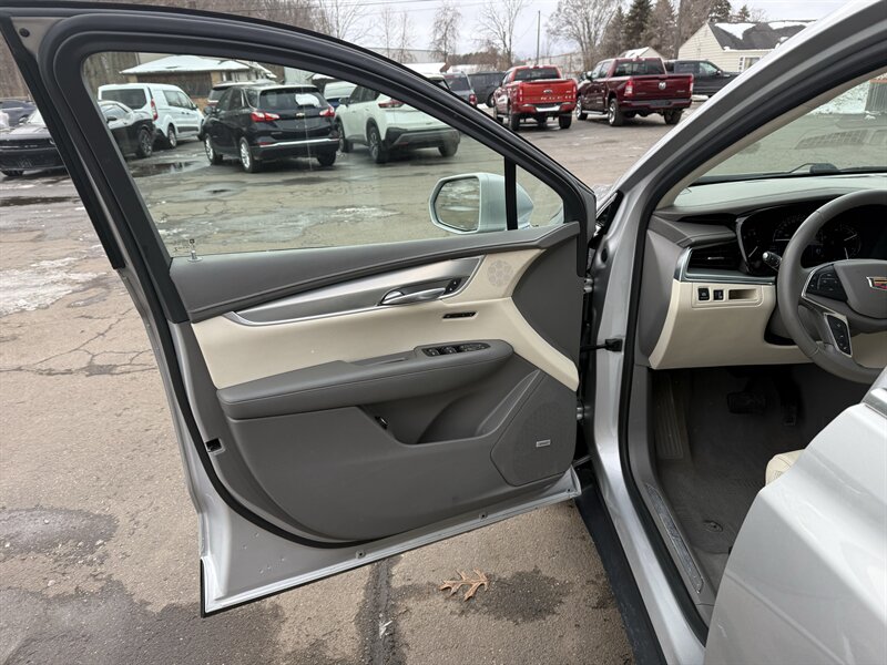 2018 Cadillac XT5 Luxury — Radiant Silver Metallic outside, Sahara Beige with Jet Black Accent leather inside, powered by a stout 3.6L V6 (310 hp, 271 lb-ft). Factory-equipped with comfortable leather seating (heated front seats, power-adjustable front seats), dual-zone automatic climate control, Cadillac CUE touchscreen infotainment with Apple CarPlay/Android Auto and Bluetooth, rearview camera with parking sensors, blind-spot monitoring and rear cross-traffic alert, keyless entry with push-button start, power liftgate, automatic headlights and alloy wheels. Below 89,000 miles (averaging <10k/year), excellent overall condition with a clean CARFAX — and an EPA-rated 18 MPG city / 25 MPG highway. Luxury that behaves itself (mostly).