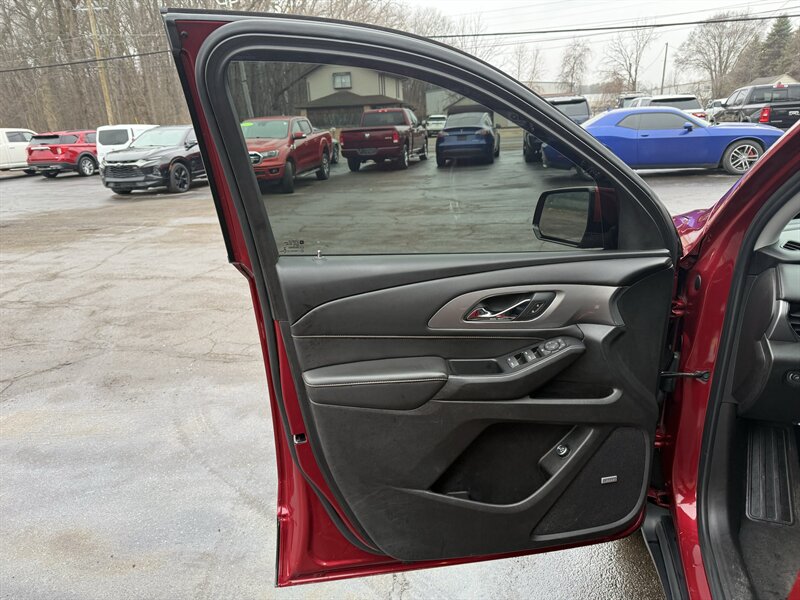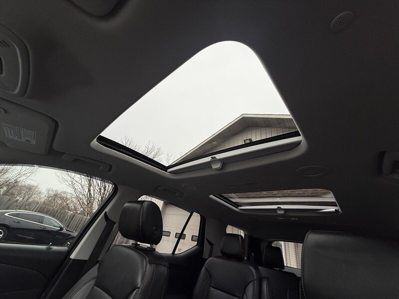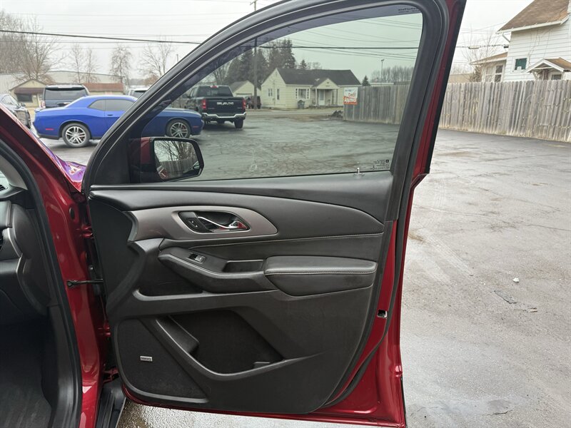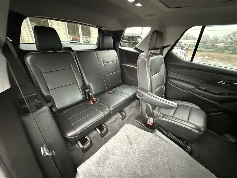 2018 Chevrolet Traverse LT Leather in Summit White with Jet Black/Dark Galvanized leather-appointed interior, powered by a 3.6L V6 (310 hp, 266 ft-lb). Factory comforts include leather seating, power-adjustable driver, heated front seats, tri-zone automatic climate control, hands-free power liftgate, remote start and keyless entry/ignition, Chevrolet MyLink touchscreen with Apple CarPlay/Android Auto, Bluetooth and USB ports, rearview camera, 18" alloy wheels, roof rails and a full safety suite (ABS, StabiliTrak, airbags, OnStar). Excellent overall condition with a clean CARFAX and economical-ish fuel numbers — 18 MPG city / 27 MPG highway — basically a three-row luxury barge that won’t totally ghost your wallet.