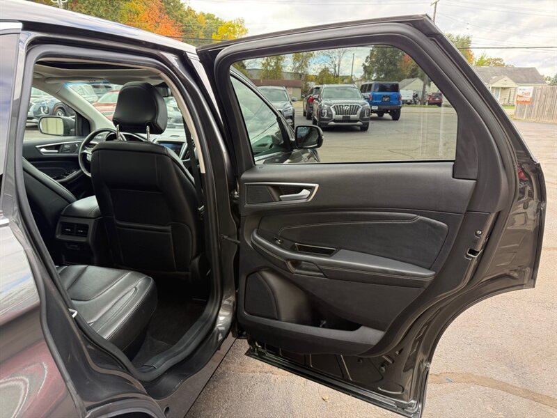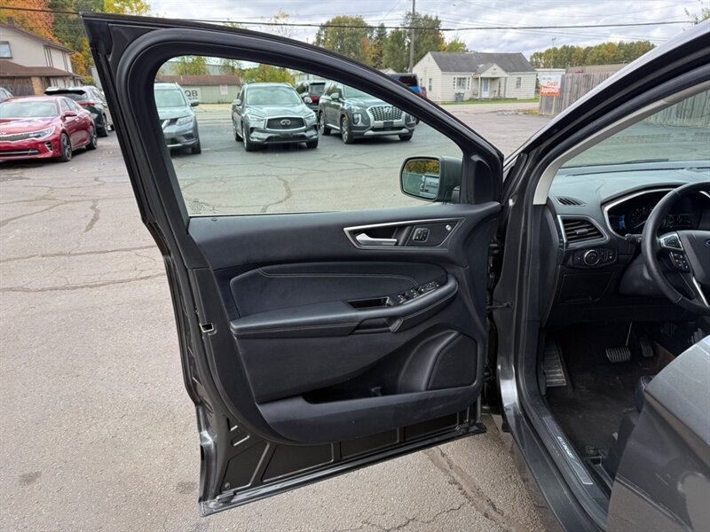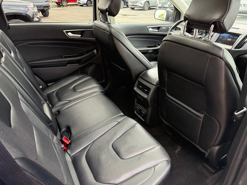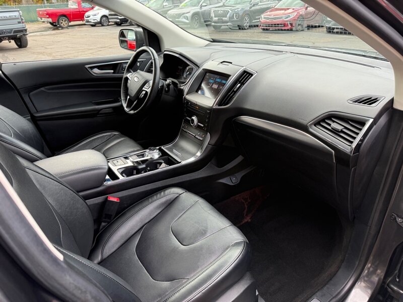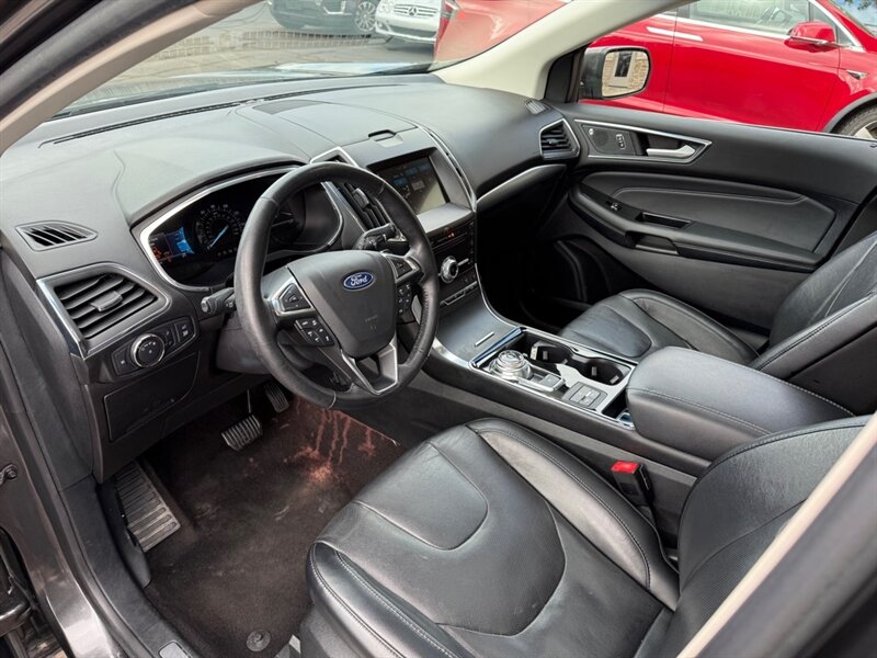 Introducing the 2019 Ford Edge Titanium-where style meets horsepower and your daily commute gets a serious upgrade! Powered by a feisty EcoBoost 2.0L Turbo I4 engine that packs a punch with 250 horses and 280 ft-lbs of torque, this SUV doesn't just take you from A to B; it makes every trip feel like an adventure (or at least a really fun drive to the grocery store). Dressed to impress in a sleek Stone Gray exterior, the Edge is like the stylish friend who always shows up looking fabulous. Step inside, and you'll be greeted by a luxurious Black leather interior that feels so good, you might just want to live in it (please don't; we need you to drive it). Equipped with factory-default features that would make even the most high-maintenance tech junkie swoon, this beauty boasts a user-friendly infotainment system, a rearview camera for all your back-and-forth maneuvers, and advanced safety features that keep you and your passengers snug as a bug in a rug. Plus, with an impressive 21 MPG in the city and 28 MPG on the highway, you'll have a little extra cash for those spontaneous road trip snacks! Did we mention it has a clean CARFAX report? Yep, this ride is as trustworthy as your best friend who always returns your favorite sweater. Don't miss out on this opportunity to own a vehicle that's in excellent overall condition and ready to hit