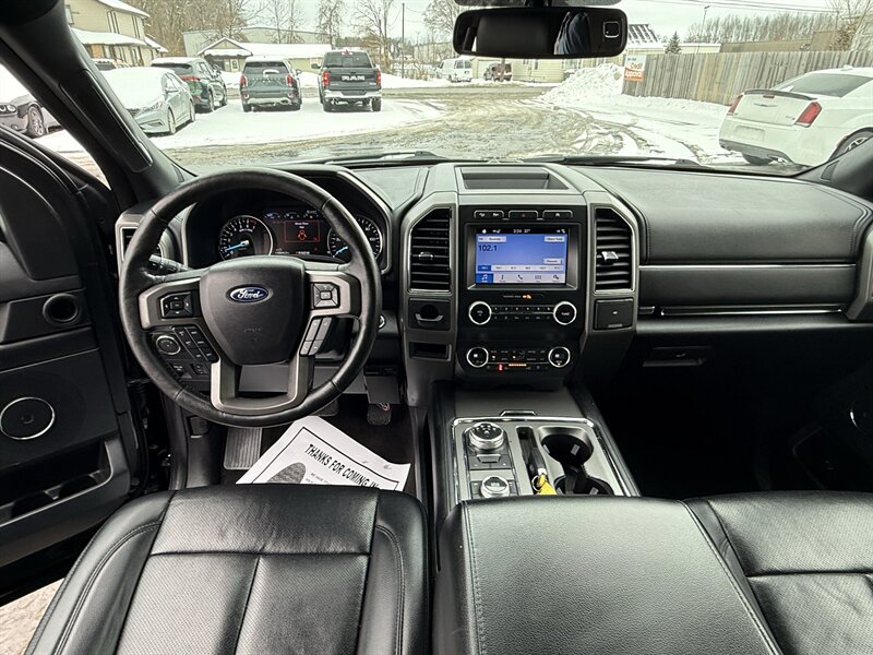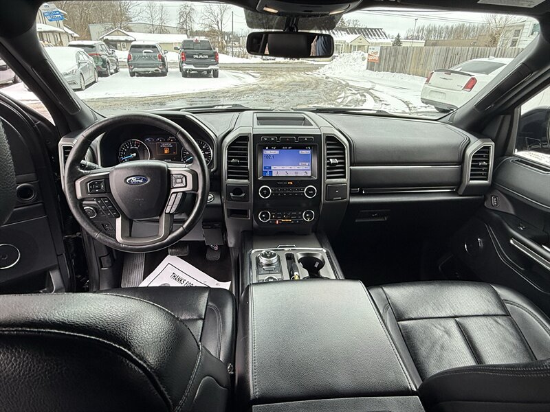 2019 Ford Expedition XLT — Agate Black exterior, Ebony leather interior. Powered by a 3.5L EcoBoost Twin-Turbo V6 (375 hp, 470 lb-ft) with a smooth 10-speed automatic; EPA-rated 17 MPG city / 22 MPG highway. Factory equipment includes SYNC 3 with 8" touchscreen, Apple CarPlay & Android Auto, Bluetooth and SiriusXM-ready audio, 4G LTE Wi-Fi, rearview camera, tri-zone automatic climate control with rear HVAC, power windows/locks and power driver’s seat, steering-wheel audio/cruise controls, third-row seating, roof rails, 20" alloy wheels and a full safety suite (ABS, multiple airbags, stability/traction control and trailer sway control). Excellent overall condition and a clean CARFAX. Comes with enough presence (and torque) to politely intimidate minivans — in the funniest way possible.