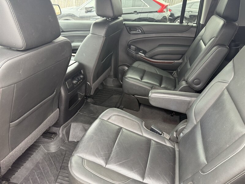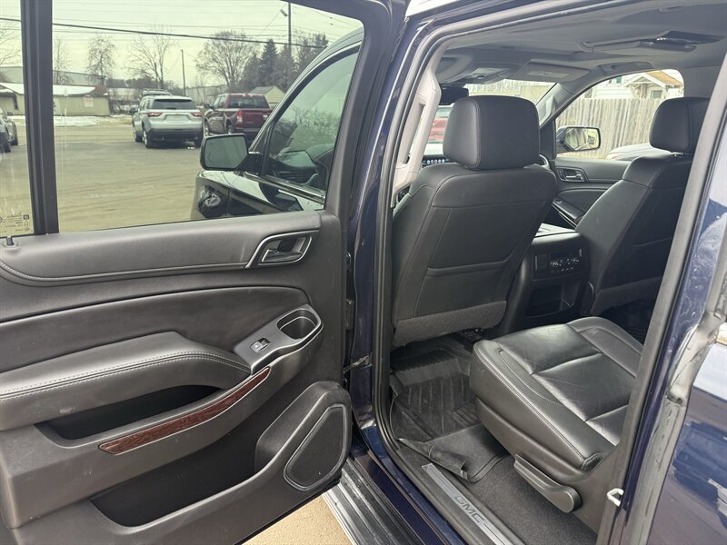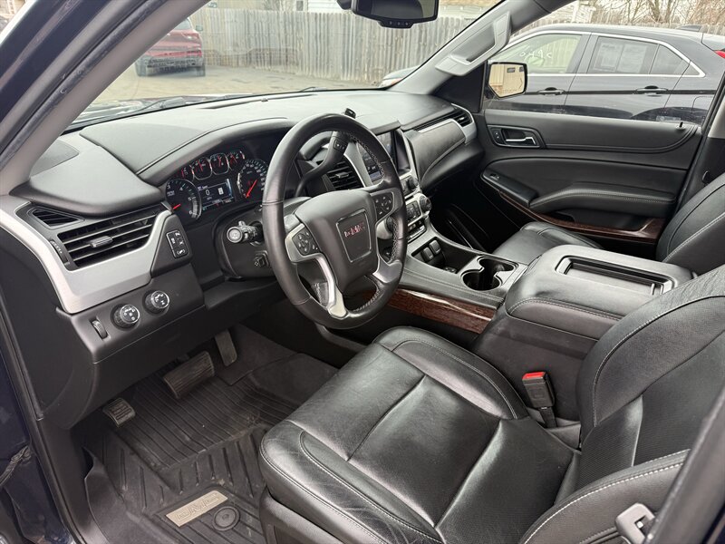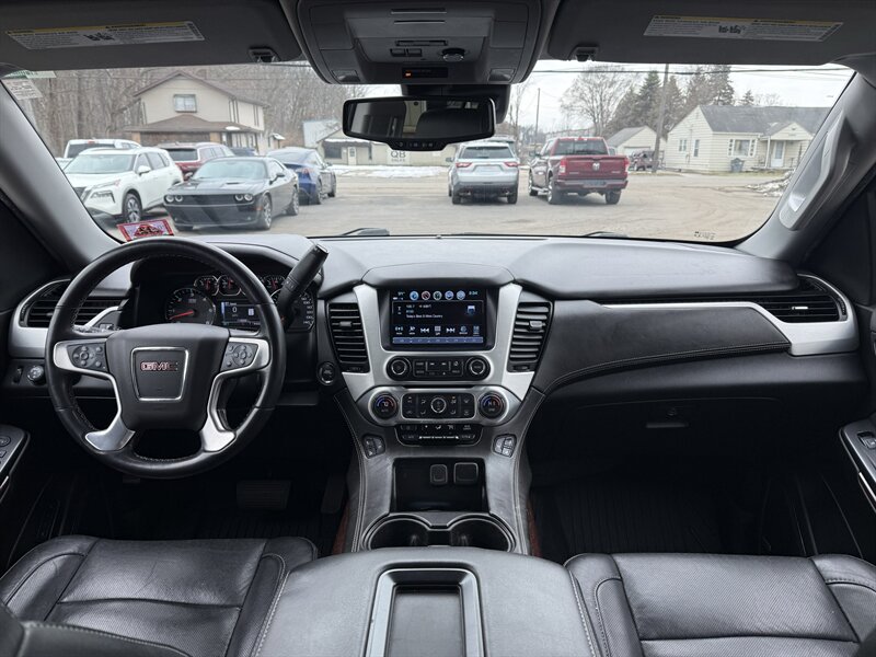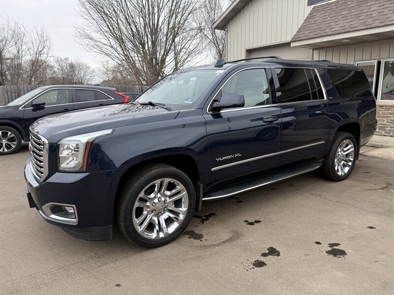 Meet the 2020 GMC Yukon XL SLT in Onyx Black with Jet Black leather — powered by the burly EcoTec3 5.3L V8 (355 hp, 383 ft-lbs) so you can tow the weekend and still make it to brunch on time. Factory-equipped with leather-appointed 3-row seating, power-adjustable heated front seats, tri-zone automatic climate control, power liftgate, keyless entry/remote start, a GMC infotainment system with smartphone integration (Apple CarPlay/Android Auto), rearview camera and parking sensors, multiple USB ports, cruise control, alloy wheels, roof rails and a full suite of stability/traction/airbag safety systems plus trailer sway control — everything you expect from a true SUV workhorse. It returns about 14 MPG city / 21 MPG highway, is in excellent overall condition, has a clean CARFAX and just one careful owner. Big, comfortable, and surprisingly civilized — like a tuxedo-clad bodyguard for your family road trips.