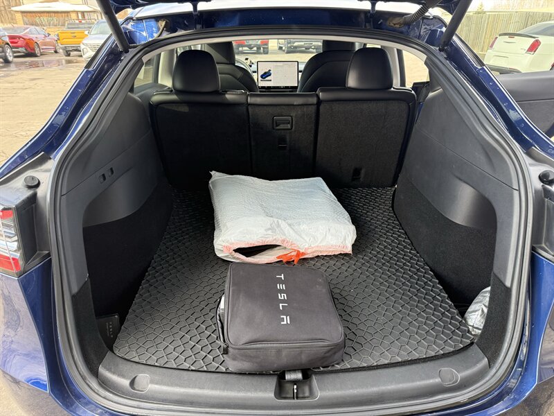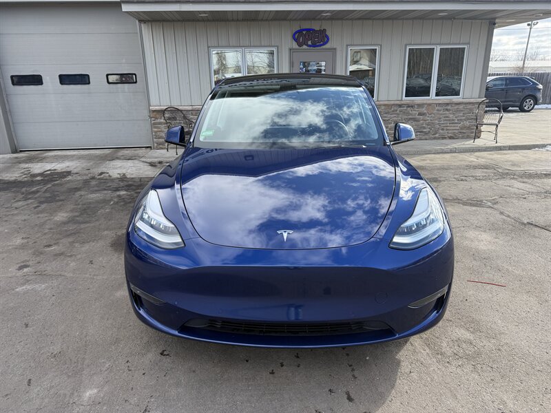 2020 Tesla Model Y Long Range — Solid Black exterior, Black interior, and the kind of tech obsession that makes other cars jealous. Powered by a dual-motor Electric setup (346 hp, 389 lb-ft) with Long Range AWD, and factory-equipped with standard Autopilot (Traffic-Aware Cruise Control + Autosteer), a 15" center touchscreen with navigation/streaming/over-the-air updates, premium audio, panoramic glass roof, power liftgate, phone-key/keycard entry, heated front seats, rearview camera and parking sensors, multiple USB ports, vegan leather seating, and active safety systems like automatic emergency braking and lane-keeping assist. One owner, clean CARFAX, excellent overall condition — basically a silent, very fast smartphone on wheels.