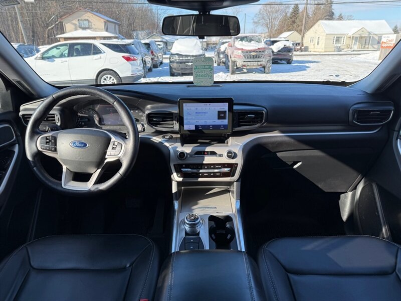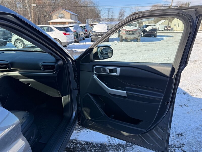 Stone Gray 2021 Ford Explorer XLT with the lively EcoBoost 2.3L Turbo I4 (300 hp / 310 lb-ft) - roomy, capable, and secretly enjoys long highway drives. Factory-equipped with a 10-speed automatic transmission, selectable drive modes, standard safety tech (pre-collision automatic emergency braking, lane-keeping assist, blind-spot monitoring with rear cross-traffic alert), SYNC 3 infotainment with 8'' touchscreen, Apple CarPlay/Android Auto, Bluetooth and USB ports, tri-zone climate control, power driver's seat, keyless entry with push-button start and remote start, power liftgate, three-row seating with fold-flat rear seats, 18-inch alloy wheels and LED lighting (interior is in excellent condition). This Explorer returns 20 MPG city / 27 MPG highway, has a clean CARFAX and just one previous owner - basically a well-mannered family SUV with a mischievous turbo.