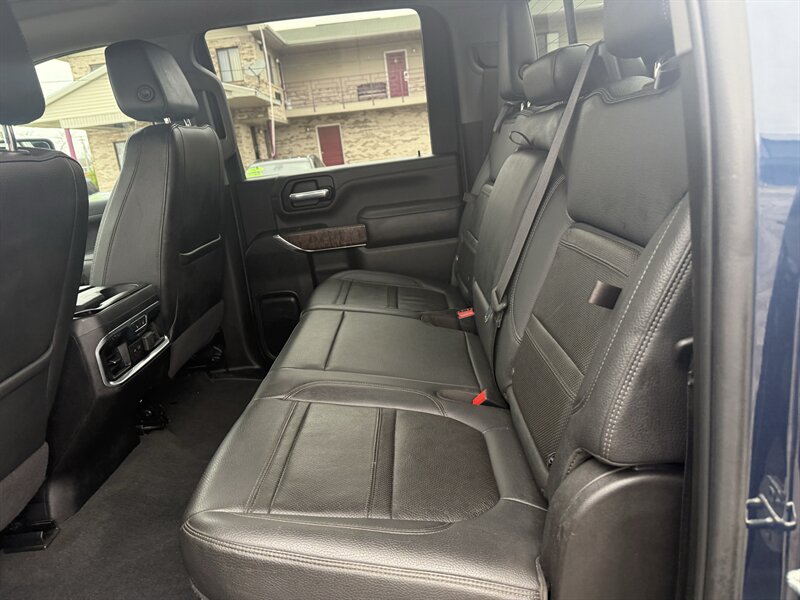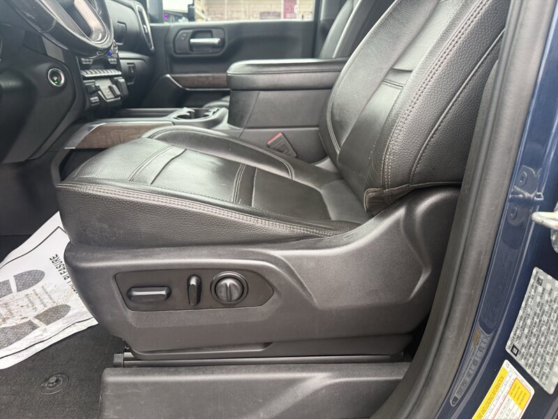 Pacific Blue Metallic, Jet Black interior, and a Duramax 6.6L Biodiesel Turbo V8 that spits out 445 hp and a grin-inducing 910 lb-ft — this 2021 GMC Sierra 2500HD Denali is the luxury workhorse that shows up to the job in a tuxedo. Factory Denali touches include the signature chrome grille and LED lighting, leather-appointed Jet Black seats with heated and ventilated front seats, a heated leather steering wheel, power-adjustable seats with memory, and Bose premium audio paired to GMC’s touchscreen infotainment with Apple CarPlay/Android Auto and navigation. Comfort and convenience arrive as dual-zone climate control, keyless entry with remote start, a rearview camera, and full heavy-duty tow prep from the factory so it hauls like a boss. Excellent overall condition, clean CARFAX, and one careful owner — basically pick-up truck royalty with a sense of humor.