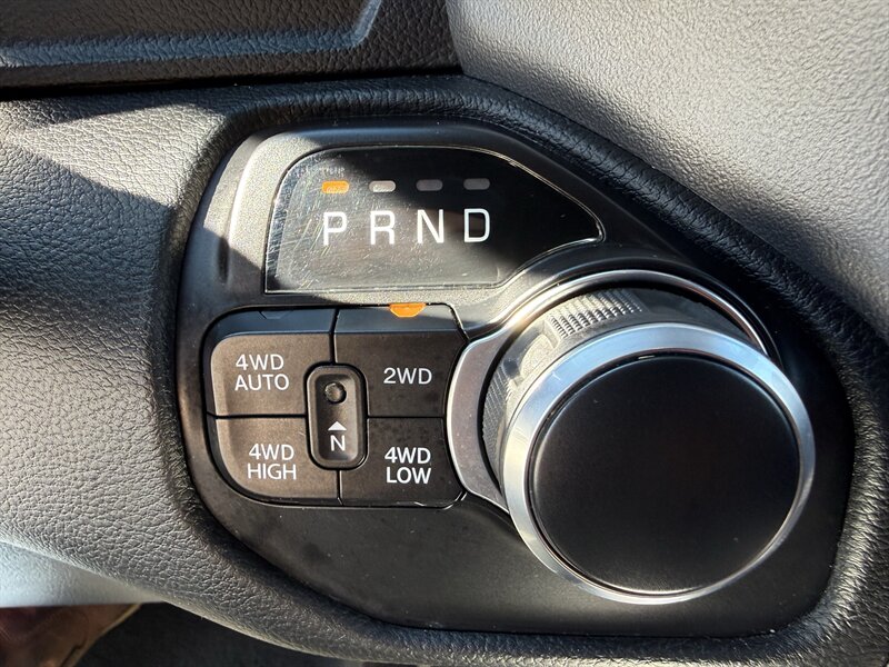 Factory features (yes, the good stuff): power windows and locks with remote keyless entry, cruise control and a tilt/telescoping steering wheel, durable Black/Diesel Gray seating with a fold-down rear seat for extra cargo room, a Uconnect infotainment system with smartphone integration and Bluetooth, AM/FM with USB ports and steering-wheel audio controls, rearview backup camera, full suite of airbags plus ABS, traction and stability control, and factory towing prep with trailer stability aids. In short: lots of creature comforts, solid safety basics, and enough grunt to tow your toys — all wrapped in red that politely demands the road’s attention.