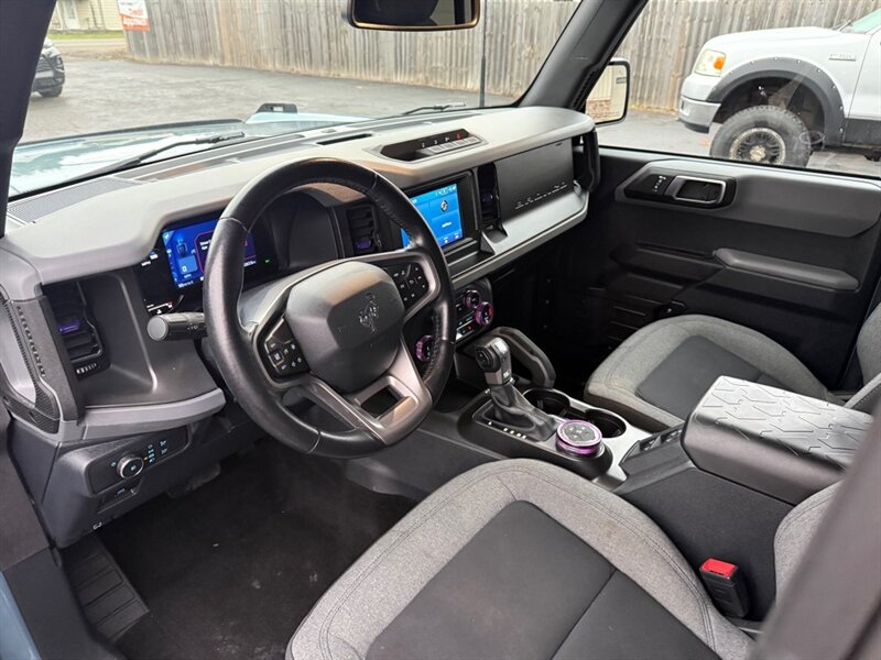 Introducing the 2022 Ford Bronco, your new adventure buddy that's ready to tackle anything from city streets to off-road escapades without breaking a sweat-or a tire! This Velocity Blue beauty is powered by an EcoBoost 2.3L Turbo I4 engine, serving up a hearty 275 horsepower and 315 ft. lbs. of torque. Think of it as the caffeinated sibling of the family sedan! Inside, you'll find a space that's more comfortable than your favorite couch-if your couch could handle mud and had a penchant for adventure. While the exact color of the interior is a mystery, we promise it's cozy enough to make you forget you're in a rugged SUV! With fuel efficiency at 20 MPG in the city and 21 MPG on the highway, the Bronco is like that friend who can party all night but still gets up for brunch the next day-responsible yet fun! This gem has had just one owner and boasts a clean CARFAX report, which means no skeletons in this Bronco's closet. Get ready to turn heads and conquer terrains with this excellent-condition ride that's just waiting for your next escapade!