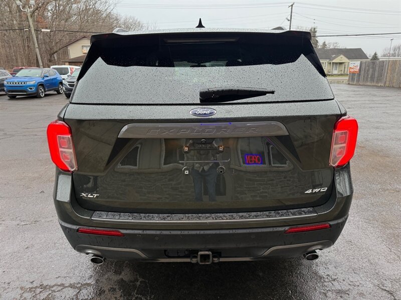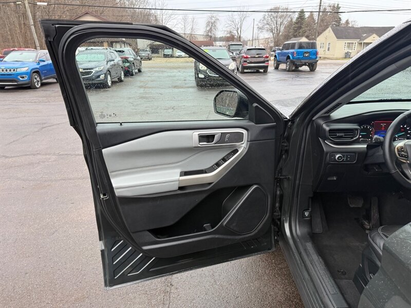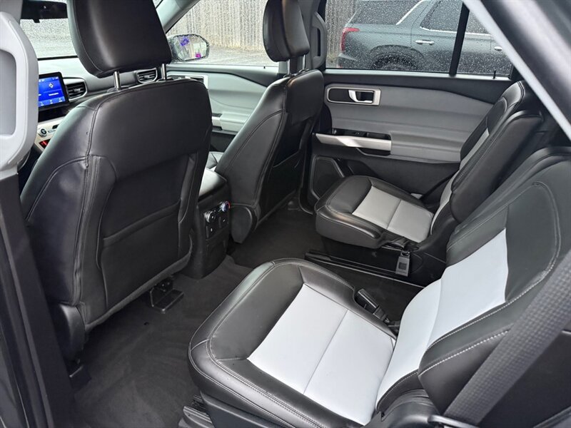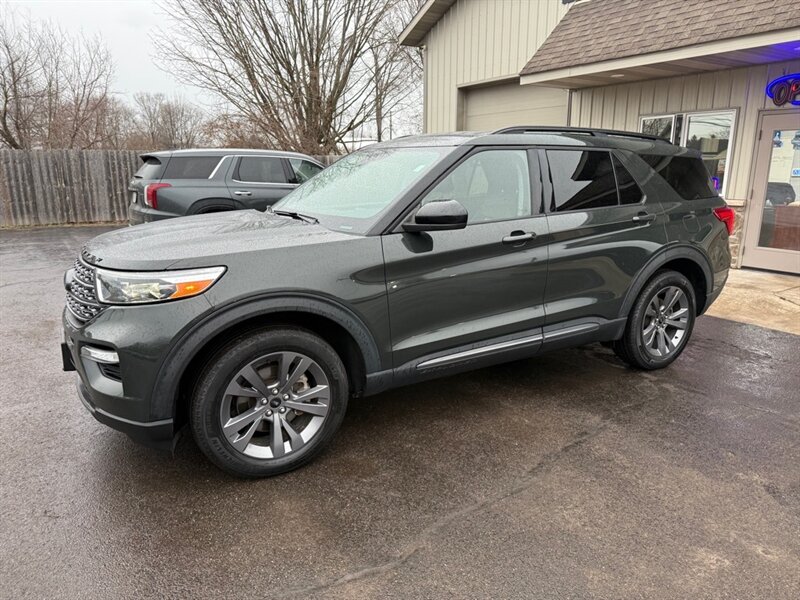 Carbonized Gray 2022 Ford Explorer XLT - like a sensible family SUV that secretly dreams of being a weekend getaway hero. Powered by a punchy EcoBoost 2.3L Turbo I4 (300 hp, 310 lb-ft) mated to Ford's 10-speed automatic, this one-owner, clean-CARFAX Explorer has under 44,000 miles (averaging <9,000/yr), returns about 20 MPG city / 26 MPG highway, and is in excellent overall condition. Factory equipment includes third-row seating for up to seven, cloth seating surfaces, power windows/locks, remote keyless entry, Ford SYNC infotainment with Apple CarPlay and Android Auto, USB ports and Bluetooth, rearview camera, roof rails, alloy wheels, and Ford's Co-Pilot360 driver-assist tech - all the sensible stuff you want, minus the cape (but it still feels heroic). Interior color not specified.