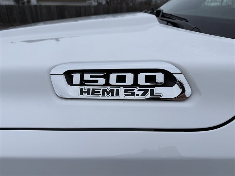 2022 RAM 1500 Big Horn — HEMI 5.7L V8 (395 hp / 410 lb-ft) mated to an 8-speed automatic — a truck that politely clears a highway and loudly announces arrival. Factory equipment includes Uconnect infotainment with smartphone integration (Apple CarPlay/Android Auto) and Bluetooth, backup camera, power windows/locks and remote keyless entry, cruise control, durable Black/Light Frost Beige cloth seating with 60/40 split rear bench and big center console, trailer-prep/tow hardware with trailer sway control, ABS, stability/traction control and multiple airbags. Exterior is Bright White Clear Coat with Diamond Black Crystal Pearl accenting, interior Black/Light Frost Beige, EPA-rated 15 MPG city / 21 MPG highway; vehicle is in excellent overall condition with a clean CARFAX and one careful owner. If horsepower had a personality, this one would high-five you.