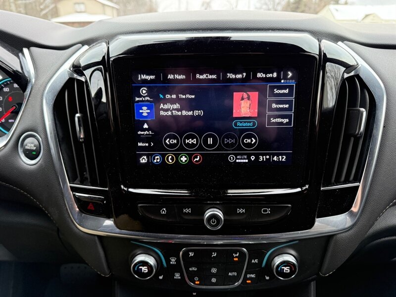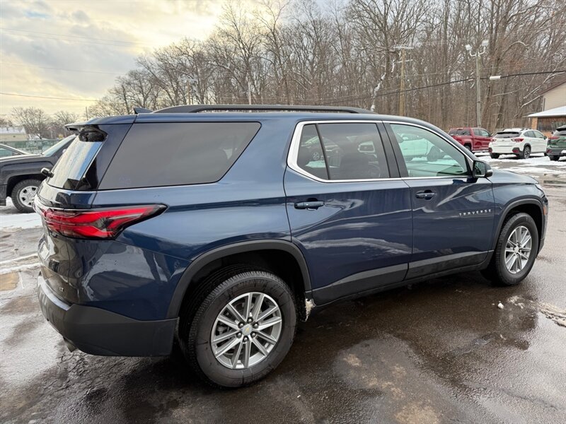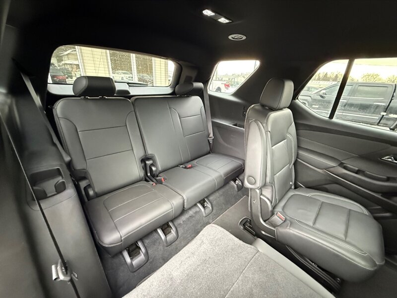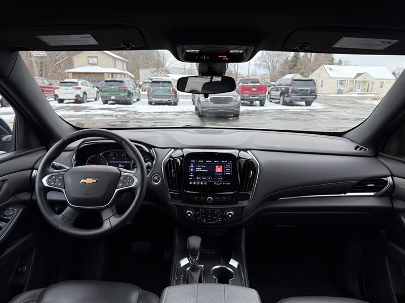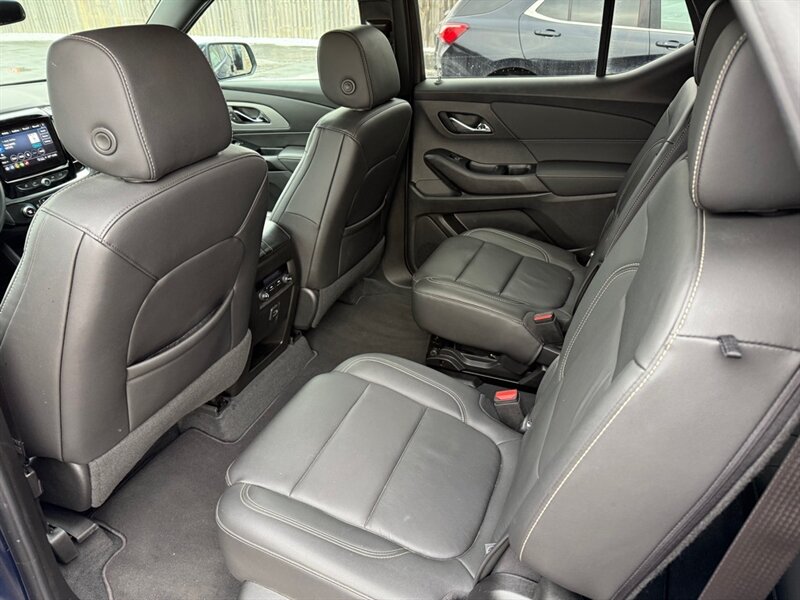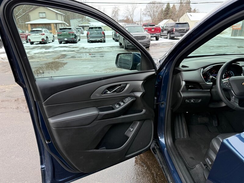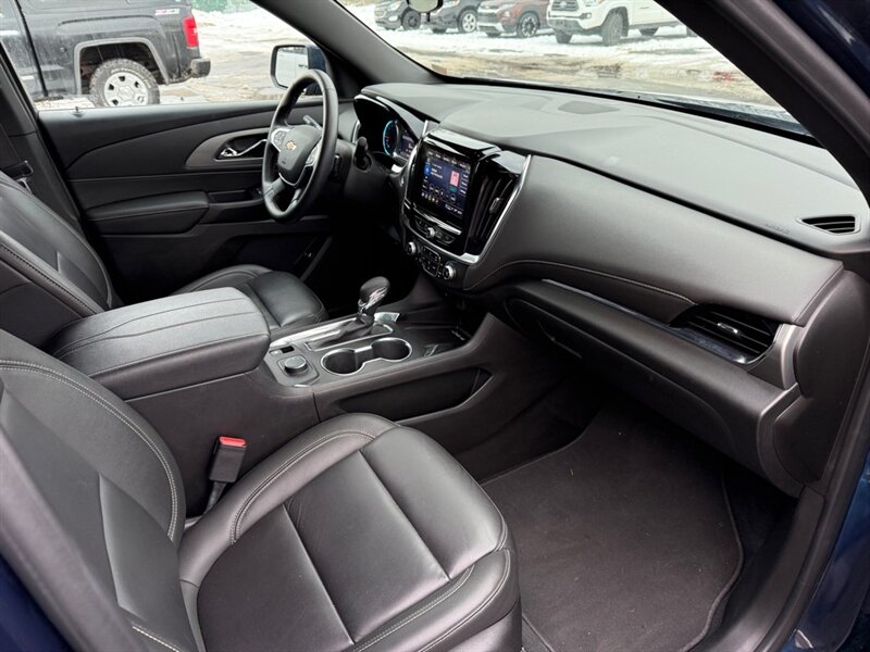 2023 Chevrolet Traverse LT Leather - Blue outside, Black leather inside, powered by a 3.6L V6 (310 hp / 266 lb-ft) with a smooth automatic and an EPA rating of 18 MPG city / 27 MPG highway. Factory-standard comforts include leather-appointed three-row seating, power-adjustable driver's seat, tri-zone automatic climate control, Chevrolet Infotainment touchscreen with Apple CarPlay/Android Auto, Bluetooth and USB ports, rear vision camera, remote keyless entry and alloy wheels - all the cozy tech and practical space a growing family (or a road-trip-obsessed friend) could ask for. Excellent overall condition, clean CARFAX and just one careful owner - basically a blue velvet rocket for people who like comfort with a side of horsepower.