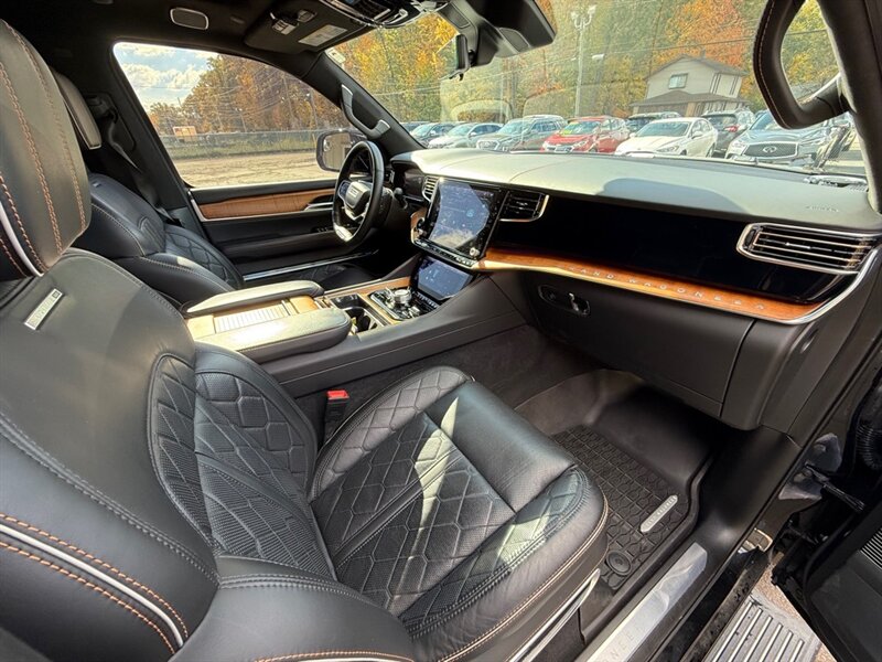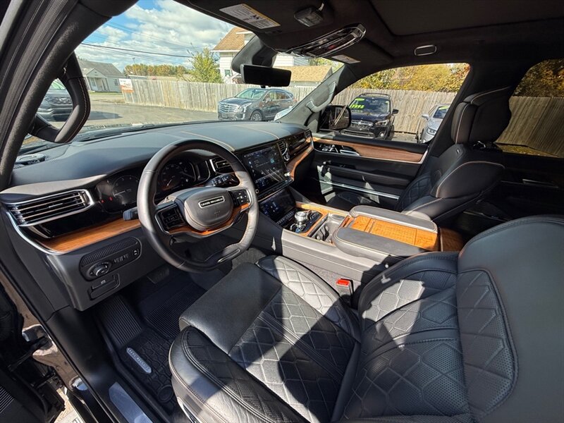 Introducing the 2023 Jeep Grand Wagoneer SERIES III-your luxurious chariot that's more powerful than a caffeinated bear! Under the hood, it boasts a Hurricane 3.0L Twin Turbo I6 engine, belting out a jaw-dropping 510 horsepower and 500 ft-lbs of torque-perfect for when you need to outrun that pesky mailman. Dressed in a suave Diamond Black Crystal Pearl Coat, this beast is as sleek as it is tough. Step inside the Global Black interior, where you'll find a plush sanctuary complete with all the bells and whistles. From a panoramic sunroof that lets in all the sunshine (or rain, if you're feeling adventurous) to a state-of-the-art infotainment system that's smarter than your average bear, this ride comes loaded with features that scream ''I've arrived!'' With a respectable 14 MPG in the city and 20 MPG on the highway, you can cruise in style without sacrificing too much at the pump-just enough to keep your wallet slightly heavier than your average gas guzzler. This beauty has had just one owner, comes with a clean CARFAX report, and is in excellent overall condition, ready to take you on your next grand adventure! So buckle up and get ready to enjoy the ride of a lifetime-who knew luxury could feel this good?