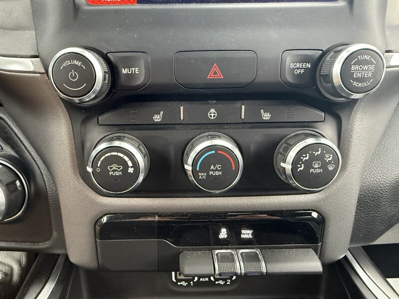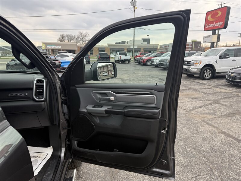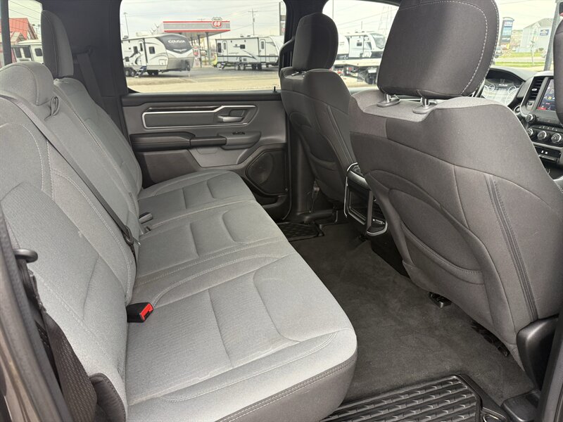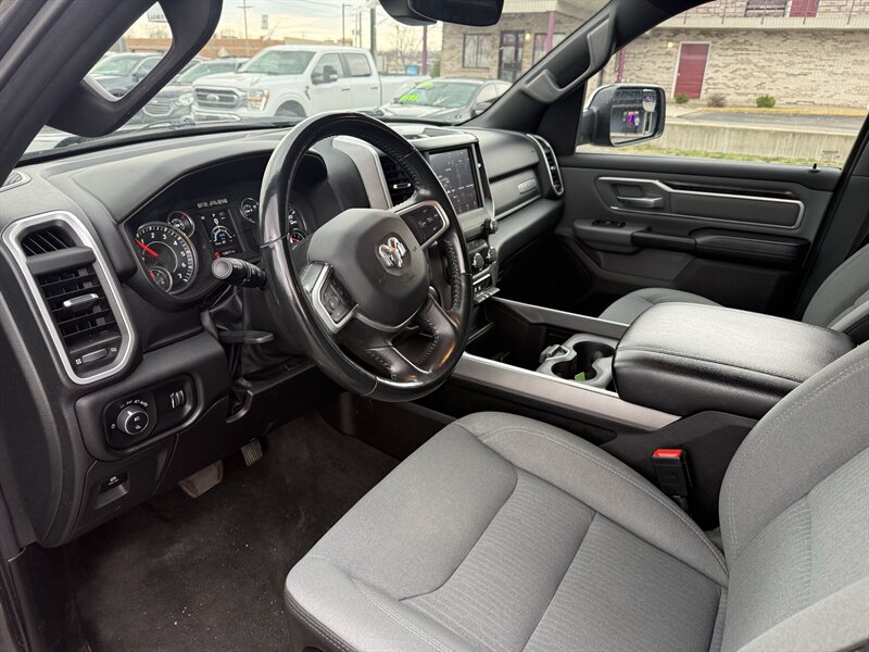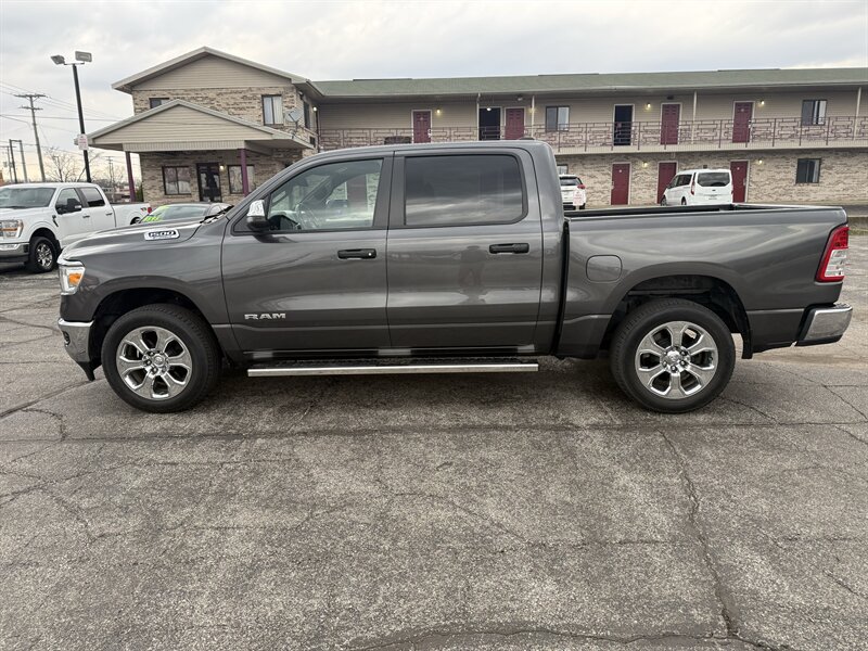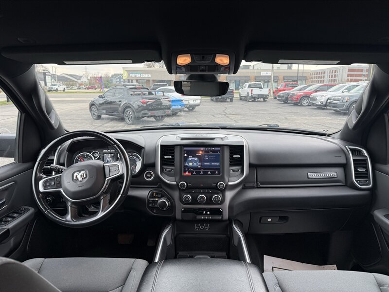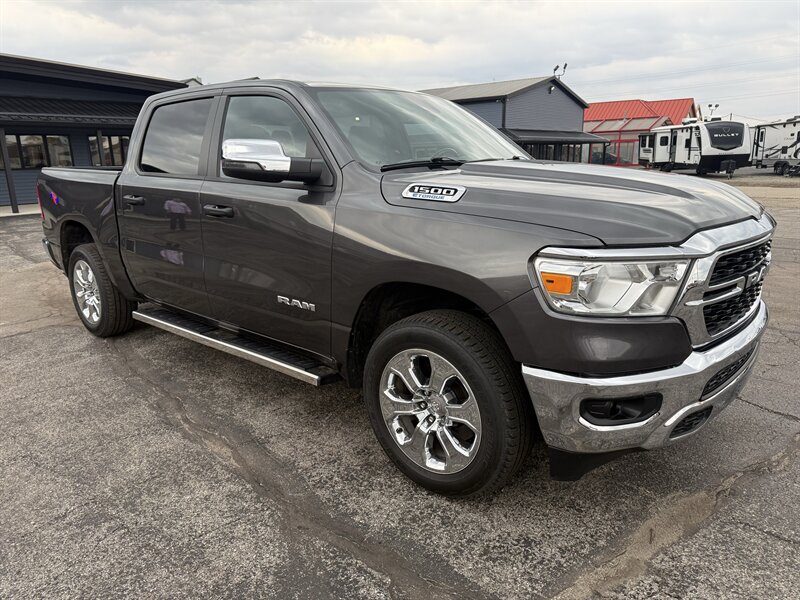 Meet the 2023 RAM 1500 Big Horn — a Granite Crystal Metallic chariot with a Pentastar eTorque 3.6L Mild Hybrid V6 (305 hp / 269 ft-lb) that sips like a responsible adult: 19 MPG city, 24 MPG highway. Factory-default features include an 8-speed automatic eTorque drivetrain, cloth Black/Diesel Gray interior, power windows and locks, remote keyless entry, backup camera, smartphone integration (Apple CarPlay/Android Auto), Bluetooth and USB ports, cruise control, ABS with stability/traction control, and factory tow prep — all the sensible stuff you actually use. Excellent overall condition, clean CARFAX and a single owner — ready to haul, impress, and make you grin.